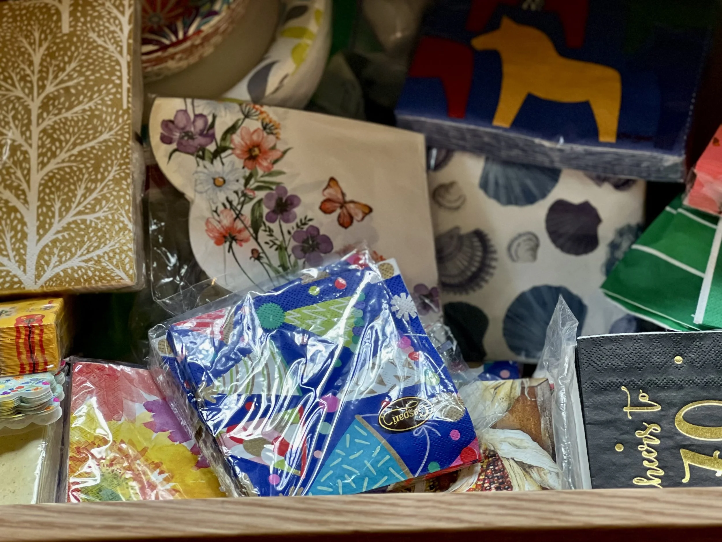 I opened up the banquet drawe -for what I don’t remember - but there I saw little piles of napkins, each holding a special memory. There were napkins for every season and celebration, each reminding me of a distinct occasion – some very beautiful, some fun and cheerful, some marking one of life’s transitions- graduations, Superbowl, Thanksgiving, Christmas, Easter- pink flamingos, party hats and balloons. I’m not sure why, but I do believe that some festive napkins can really uplift a party.