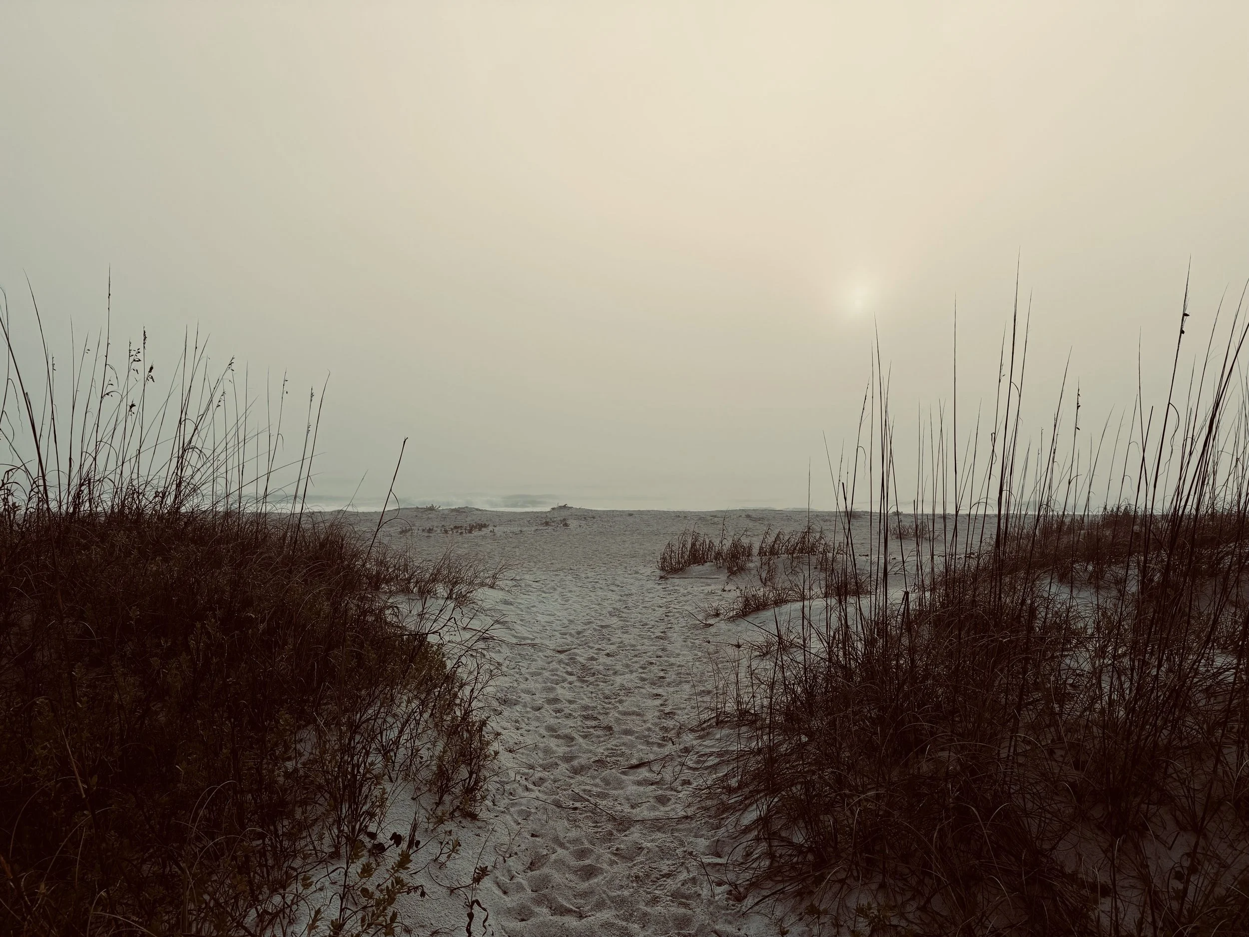 On a quiet ocean beach in Florida-I set out for my daily sunrise walk. For two foggy, windy and chilly mornings I saw a father and his young daughter huddled against the wind under a half-buried beach umbrella – dressed for the winter chill, waiting for the sun to rise …... together.